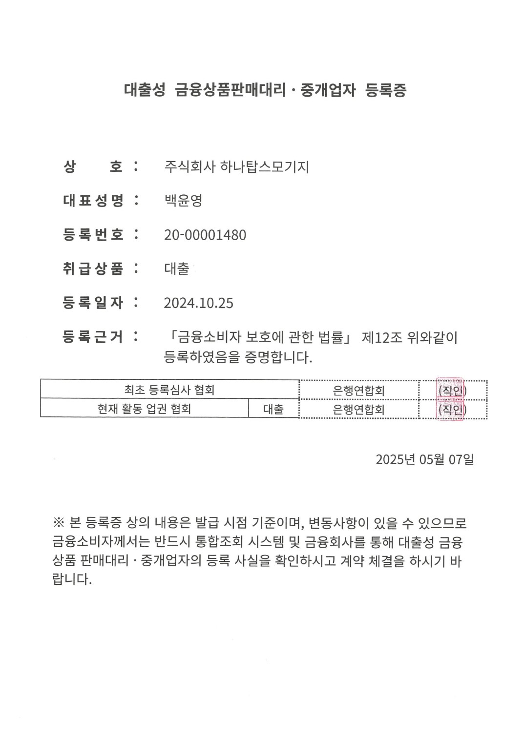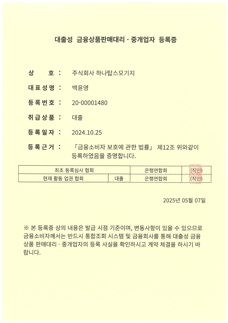 대출모집인 등록증